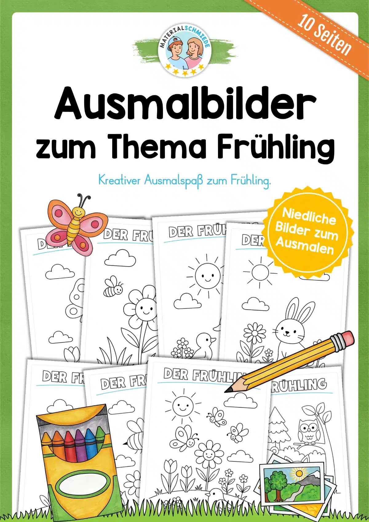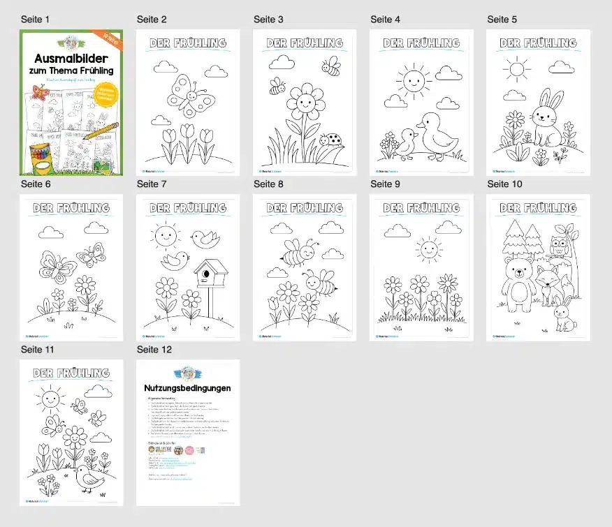 Hier findet ihr 10 Ausmalbilder zum Frühling, welche ihr ideal für die Freiarbeit, Vertretungsstunden oder die Förderung der Feinmotorik in der Kita einsetzen könnt.