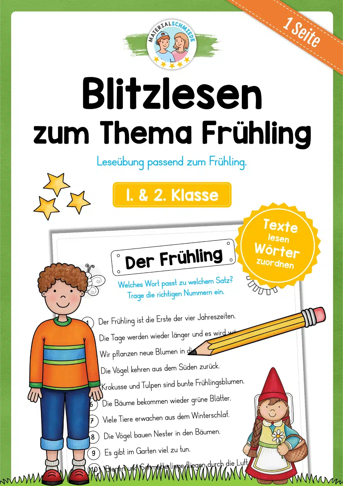 Hier findet ihr eine Leseübung zum Frühling, bei der es um das „Blitzlesen“ geht.