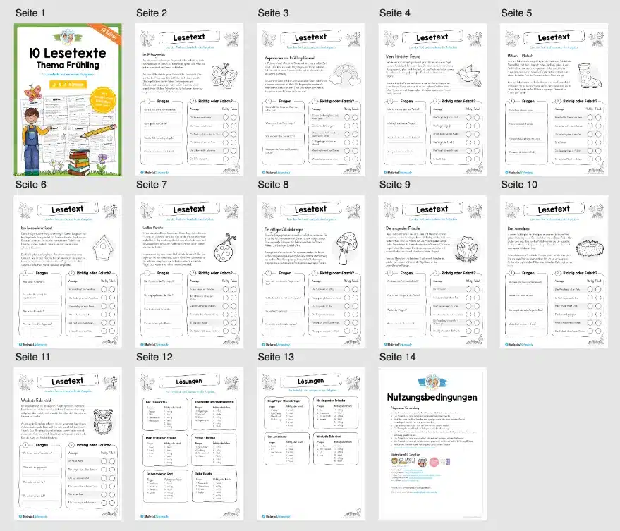 Dieses Materialpaket enthält insgesamt 10 verschiedene Lesetexte zum Frühling mit jeweils zwei Aufgaben.