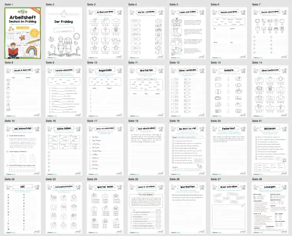 Das Materialpaket zum Thema Frühling für den Deutsch Unterricht in der 2. und 3. Klasse beinhaltet 25 verschiedene Arbeitsblätter.
