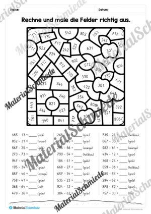 - 1 Arbeitsblatt mit Aufgaben zur Subtraktion im Zahlenraum 1.000
