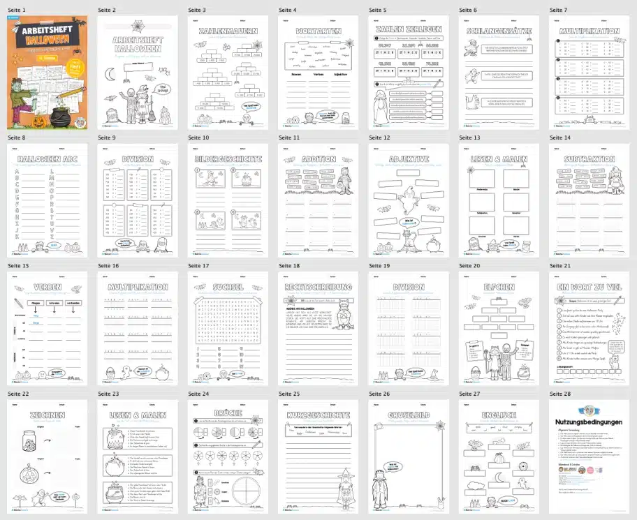 Hier findet ihr ein Arbeitsheft zum Thema Halloween für die 4. Klasse bestehend aus insgesamt 25 Seiten.