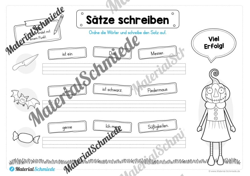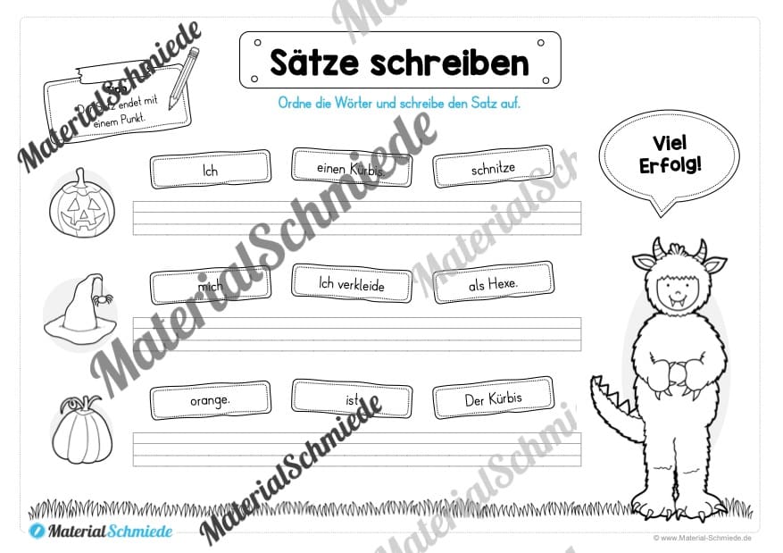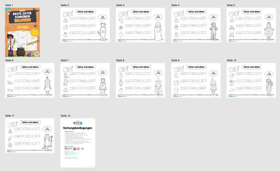 Dieses kleine Arbeitsheft enthält insgesamt 10 Seiten, auf denen die Schüler erste Sätze passend zu Halloween schreiben sollen.