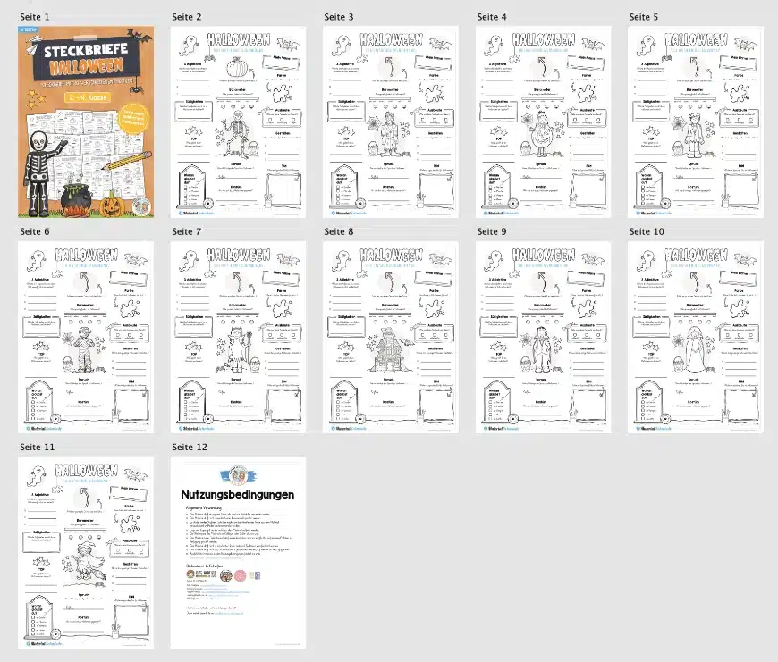 Hier findet ihr 10 Steckbriefe zu Halloween.