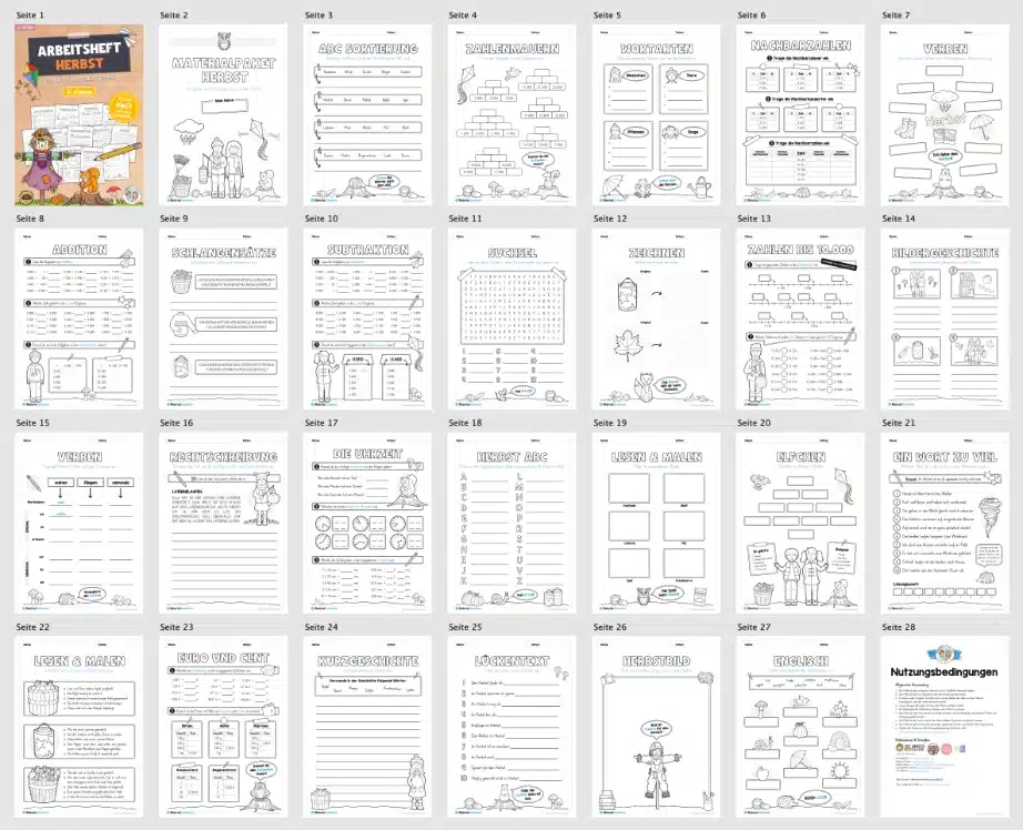 Hier findet ihr ein Arbeitsheft zum Thema Herbst für die 4. Klasse bestehend aus insgesamt 25 Seiten.