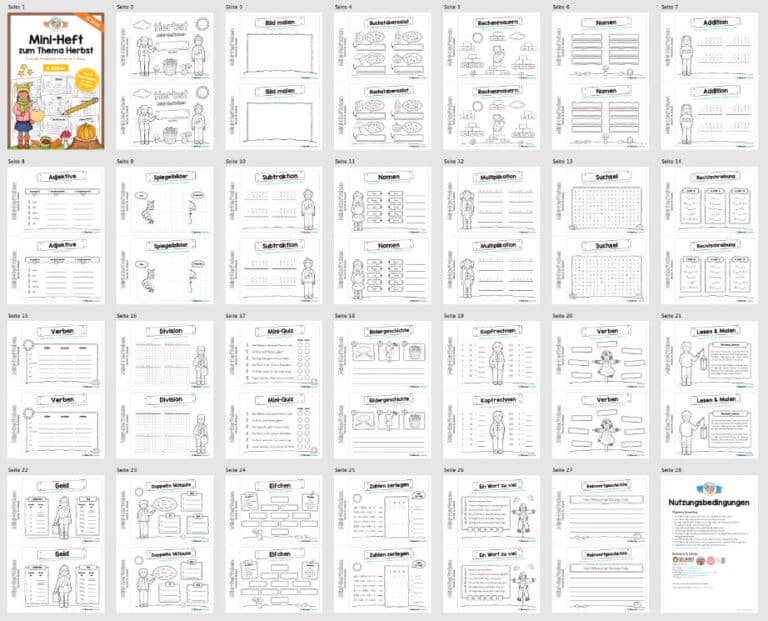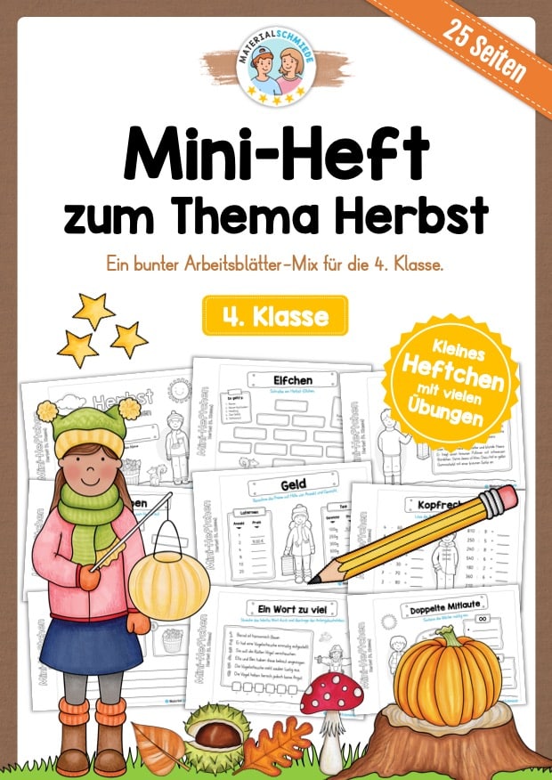 Hier findet ihr ein Mini-Heftchen zum Thema Herbst für die 4. Klasse bestehend aus insgesamt 25 Seiten.