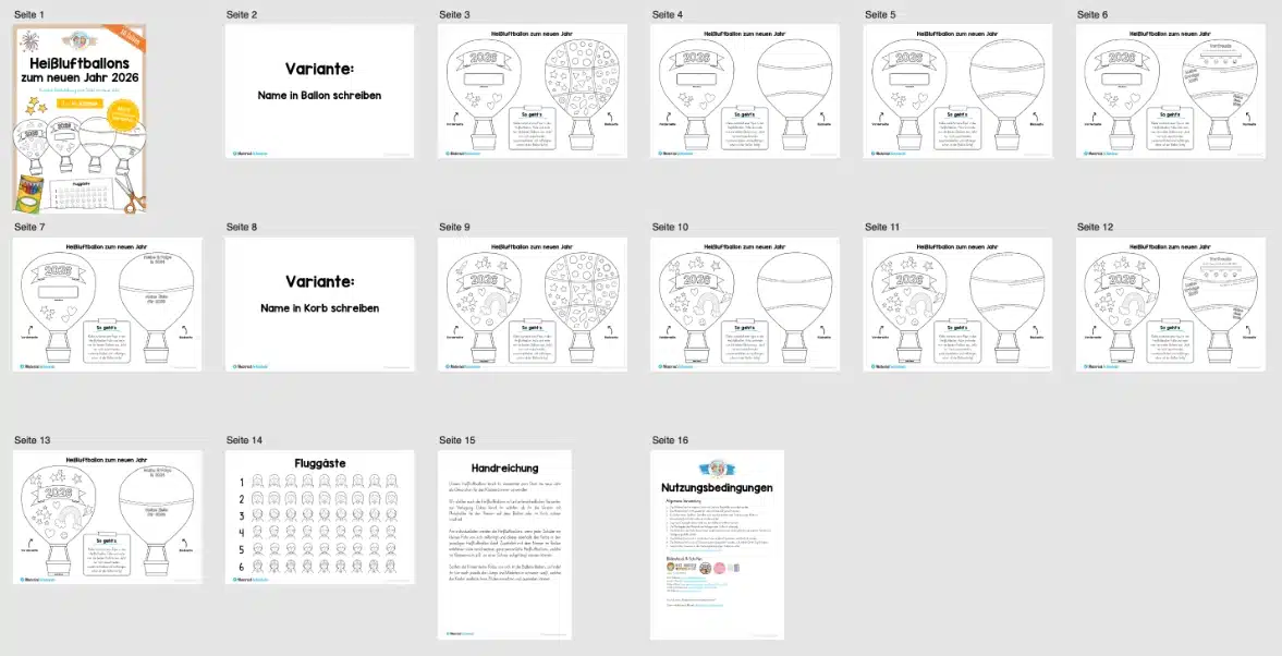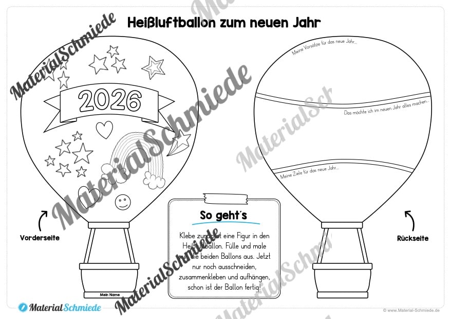 Hier findet ihr eine Bastelübung mit Heißluftballons zum neuen Jahr 2026.