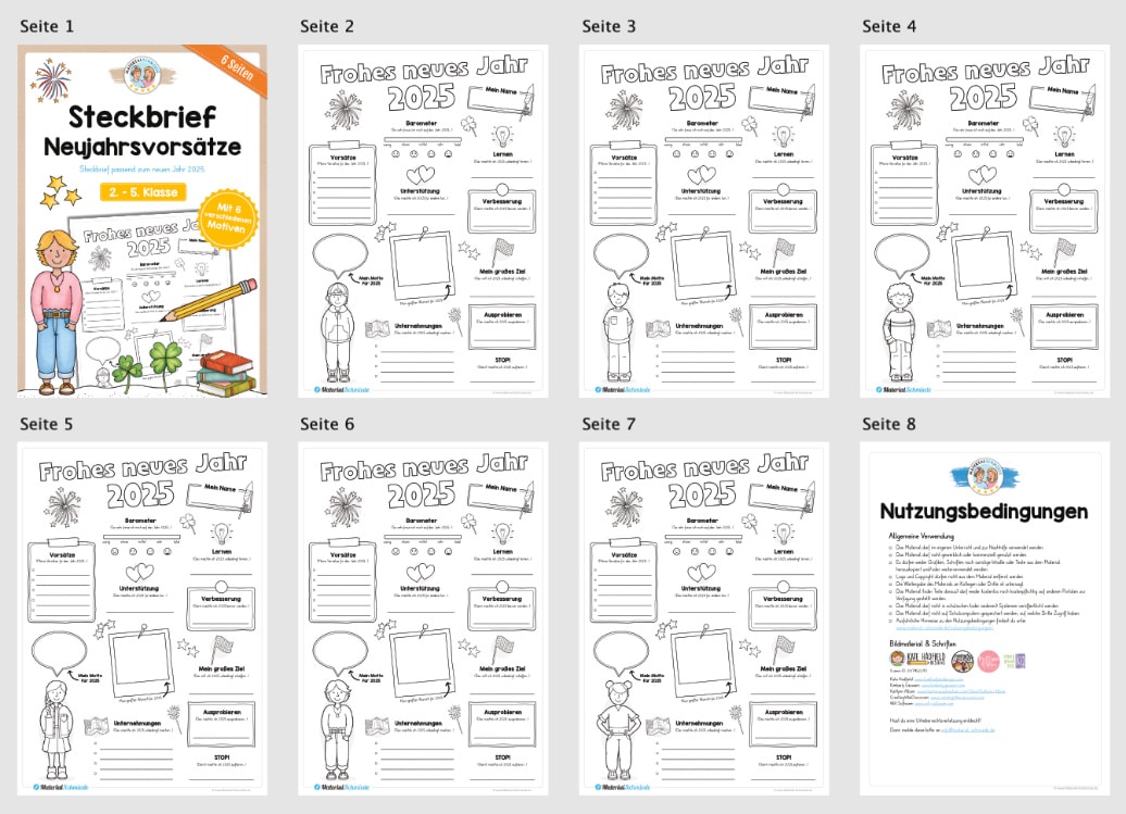 Den Steckbrief zu den  Neujahrsvorsätzen 2025 könnt ihr von der 2. bis zur 5. Klasse einsetzen.