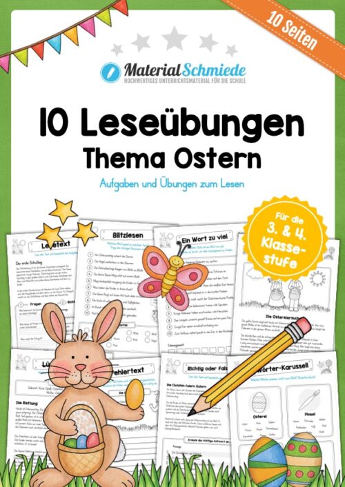 Dieses Materialpaket enthält insgesamt 10 Leseübungen zu Ostern. Dabei liegt der Fokus auf dem „Lesen und Verstehen“ in der 3. und 4. Klasse.