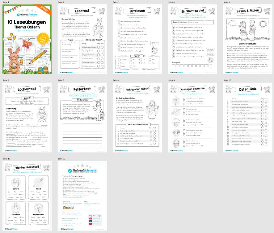 Viel Spaß mit den 10 verschiedenen Leseübungen passend zu Ostern.