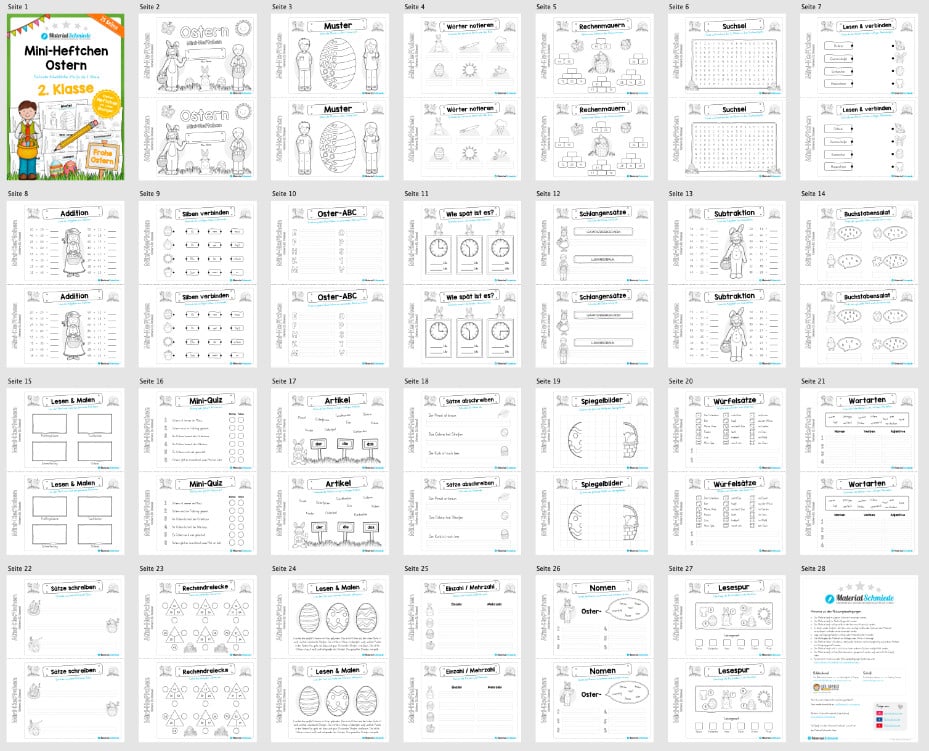 Hier findet ihr ein Mini-Heftchen zum Thema Ostern für die 2. Klasse bestehend aus insgesamt 25 Seiten.