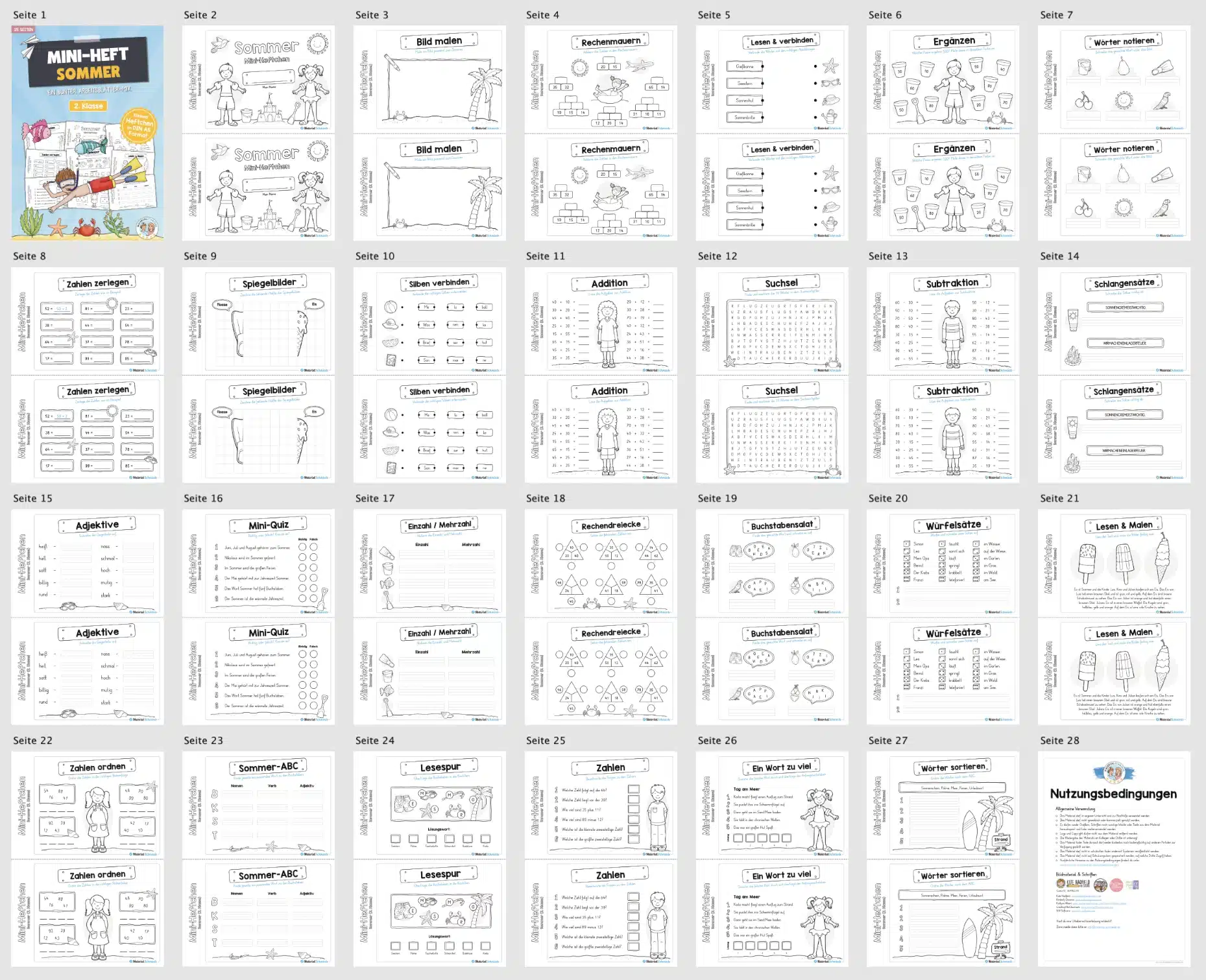 Folgende Übungen sind in dem Mini-Heftchen zum Sommer für die 2. Klasse enthalten: