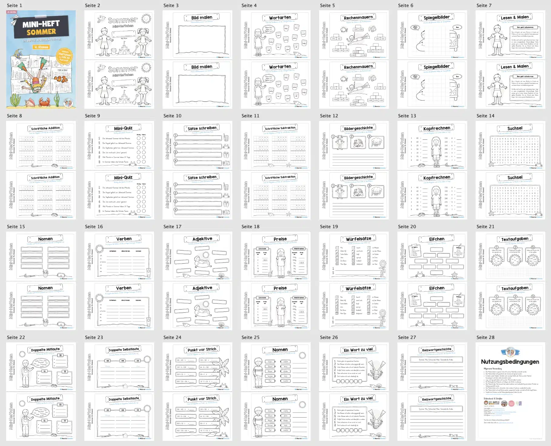 Hier findet ihr ein Mini-Heftchen zum Thema Sommer für die 4. Klasse bestehend aus insgesamt 25 Seiten.