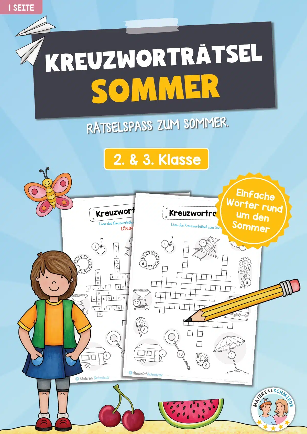 Auf diesem Arbeitsblatt sollen die Schüler ein Kreuzworträtsel zum Sommer mit insgesamt 12 Fragen bzw. Abbildungen lösen. Die Lösung ist auf dem PDF ebenfalls vorhanden.