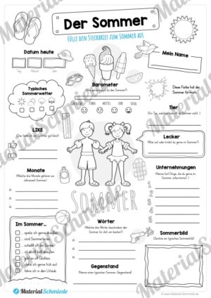 Auf diesem PDF findet ihr einen Steckbrief zum Sommer, der liebevoll von den Kindern ausgefüllt werden soll.