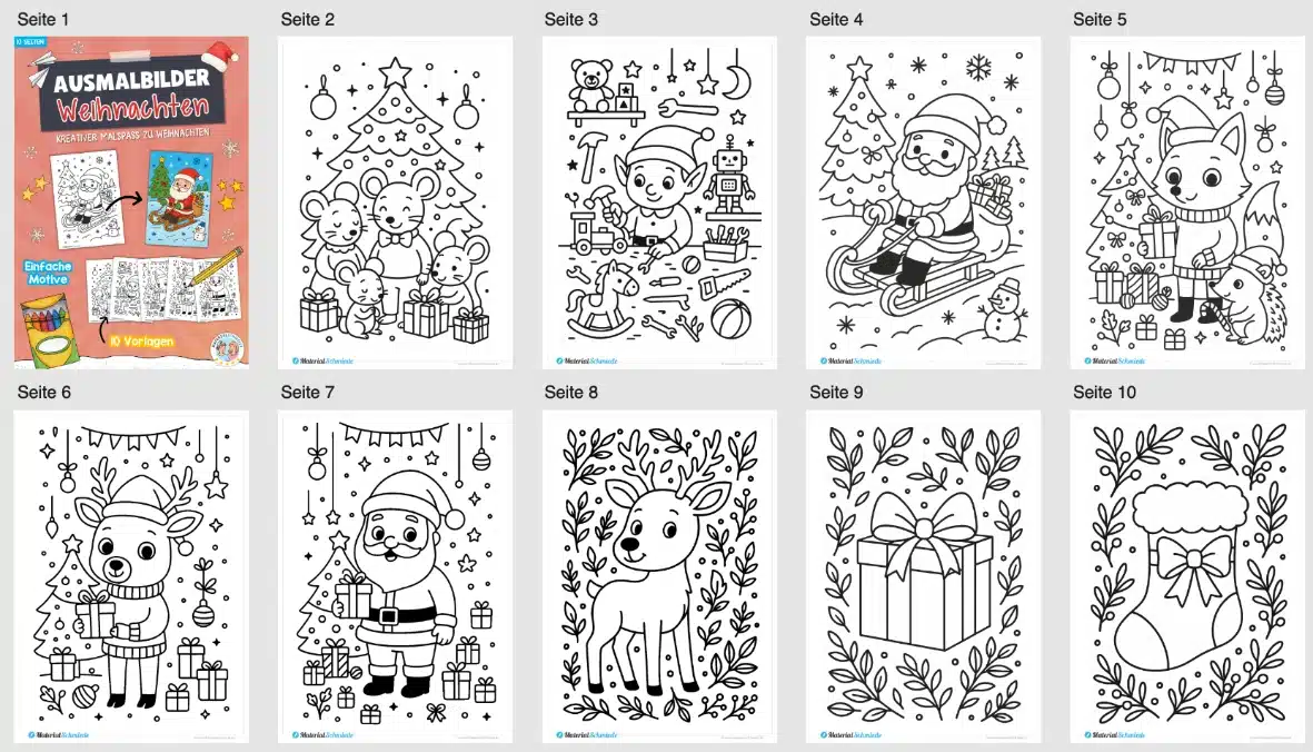 Hier findet ihr 10 Ausmalbilder rund um das Thema Weihnachten.