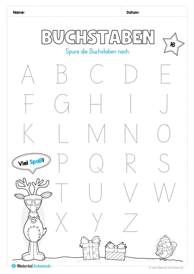 Auf jedem Arbeitsblatt ist ein Stern mit einer Zahl vorhanden, welche den Tag im Dezember widerspiegelt. So können die Kinder jeden Tag ein Arbeitsblatt bearbeiten.