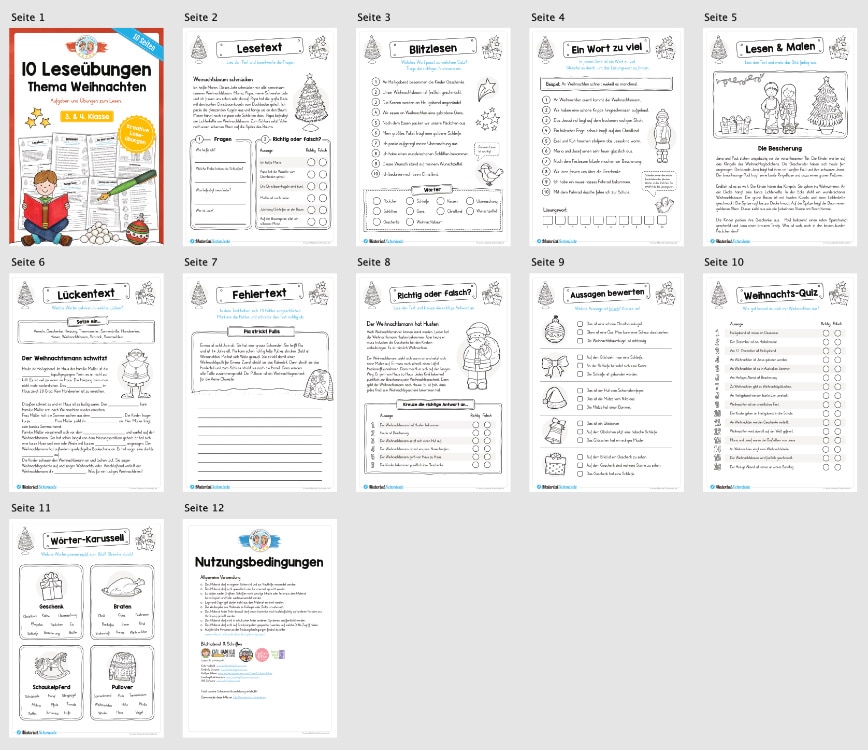 Dieses Materialpaket enthält insgesamt 10 Leseübungen zu Weihnachten. Dabei liegt der Fokus auf dem „Lesen und Verstehen“ in der 3. und 4. Klasse.