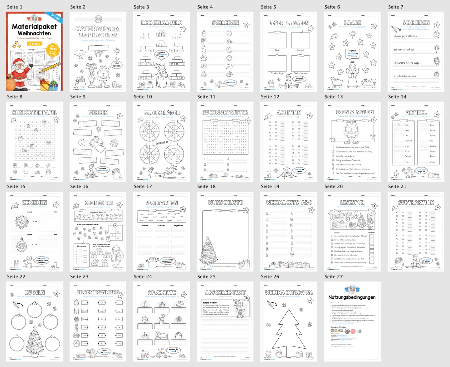 Hier findet ihr ein Arbeitsheft zum Thema Weihnachten für die 2. Klasse bestehend aus insgesamt 24 Seiten.