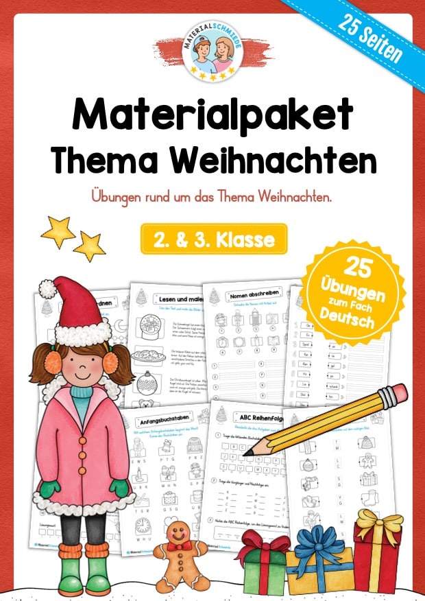 Dieses Arbeitsheft zum Thema Weihnachten für den Deutsch Unterricht in der 2. und 3. Klasse beinhaltet 25 verschiedene Arbeitsblätter.