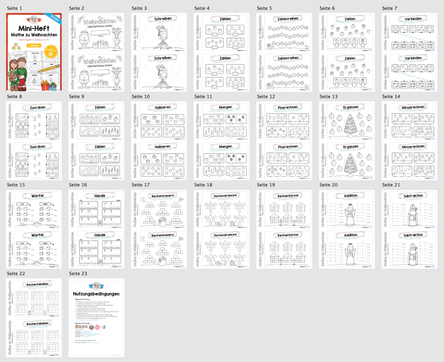 20 Seiten: Mathe Weihnachts-Heftchen (Zahlenraum bis 10)