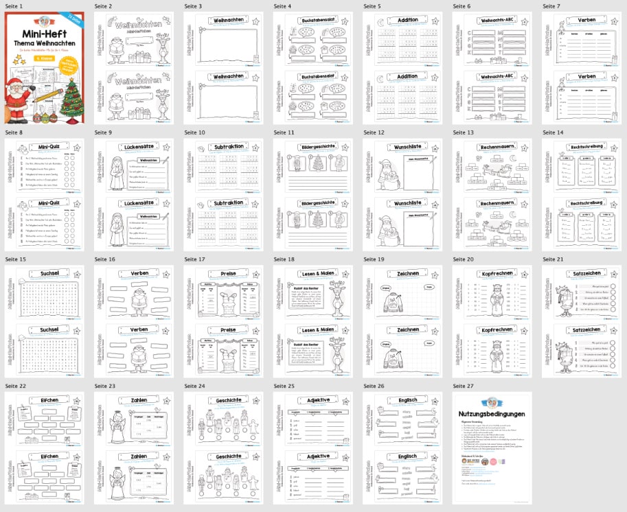 Hier findet ihr ein Mini-Heftchen zum Thema Weihnachten für die 4. Klasse bestehend aus insgesamt 24 Seiten.