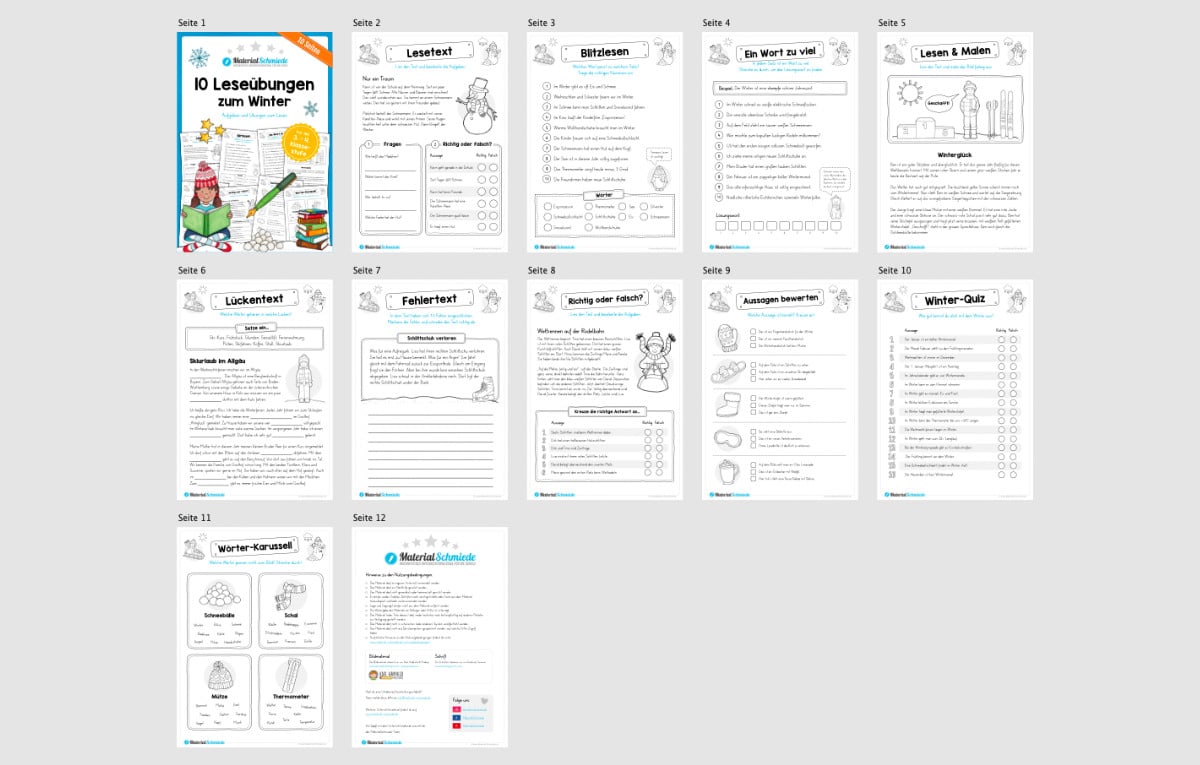 Viel Spaß mit den 10 verschiedenen Leseübungen passend zum Winter.
