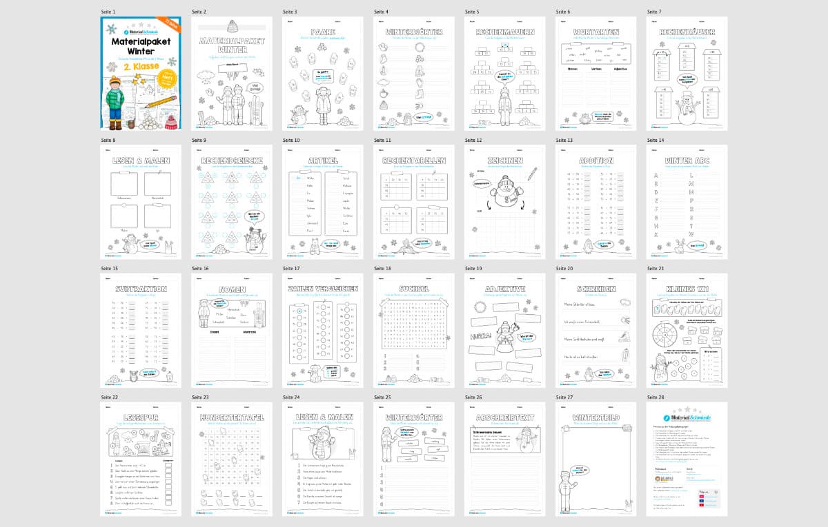 Hier findet ihr ein Arbeitsheft zum Thema Winter für die 2. Klasse bestehend aus insgesamt 25 Seiten.