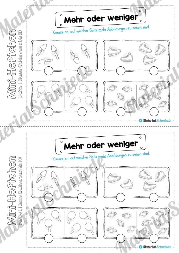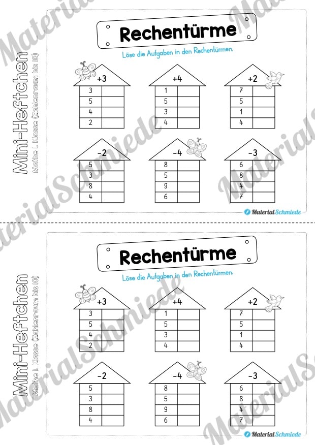 Folgende Übungen sind in dem Mathe-Mini-Heftchen für die 1. Klasse enthalten: