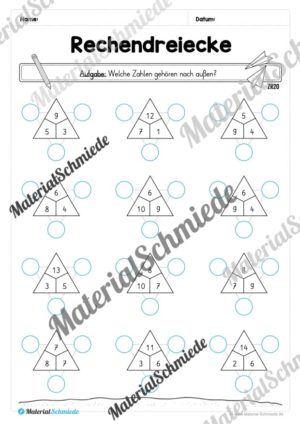 Unter anderem sind folgende Übungen zu den Rechendreiecken vorhanden: