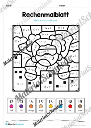 - 4 Rechenmalblätter im ZR 20 mit Zehnerübergang
