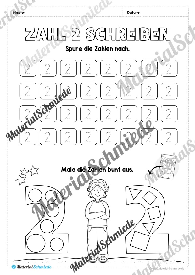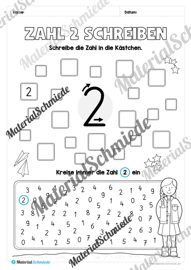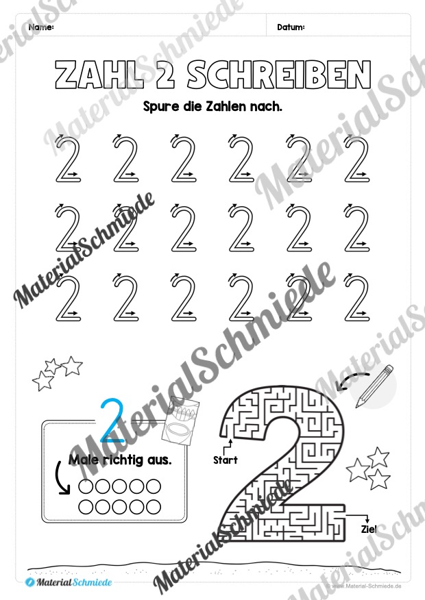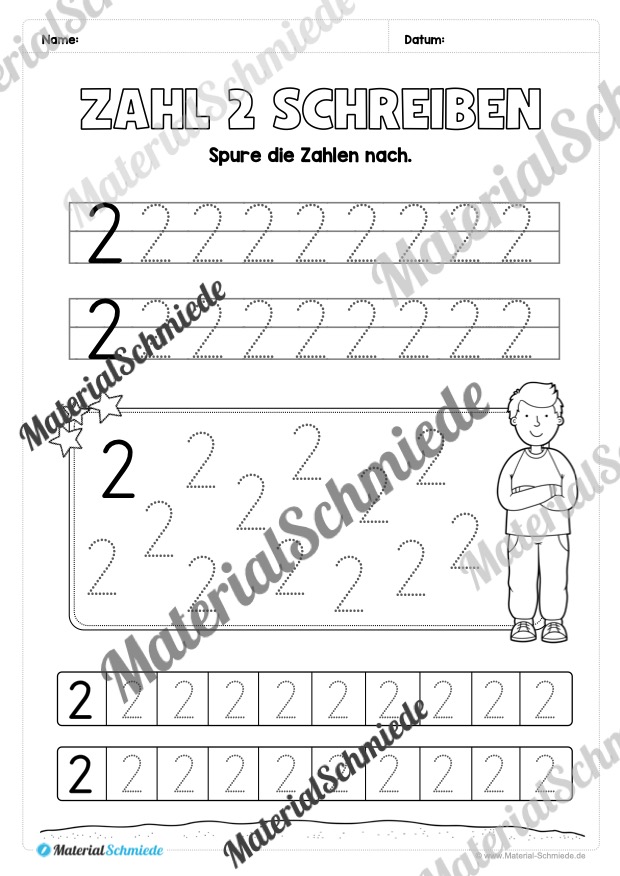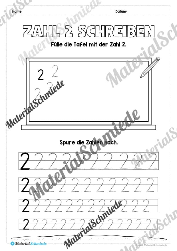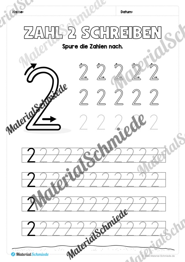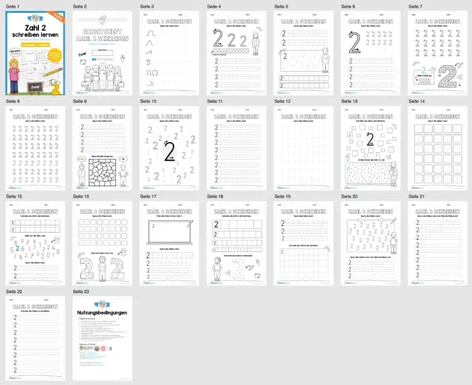Dieses Arbeitsheft beinhaltet insgesamt 20 verschiedene Arbeitsblätter zum Schreiben lernen der Zahl 2.