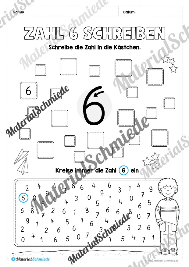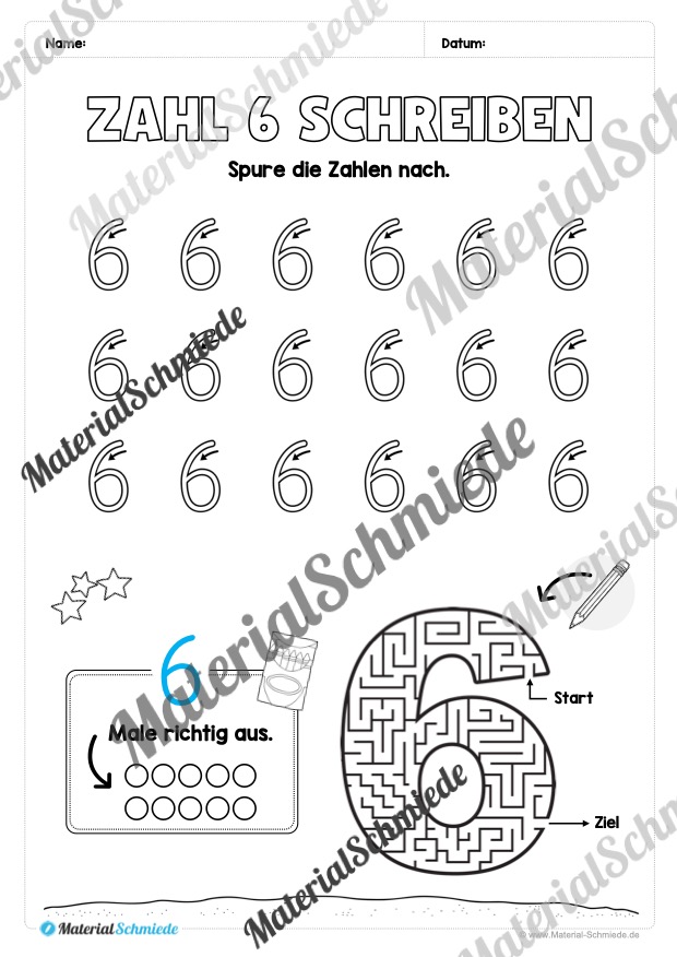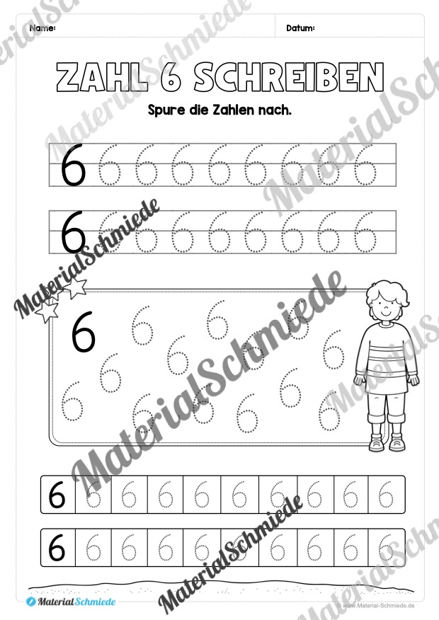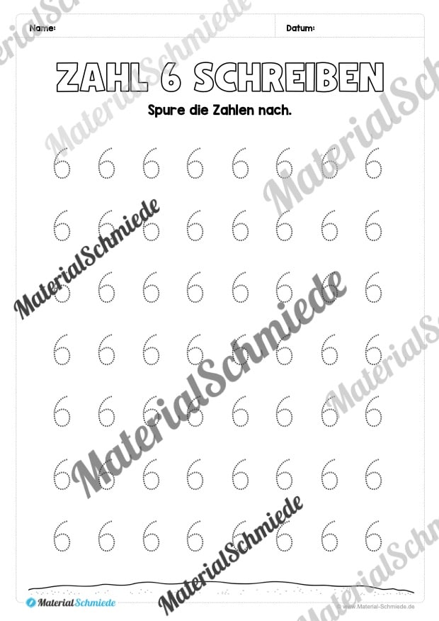 Dieses Arbeitsheft beinhaltet insgesamt 20 verschiedene Arbeitsblätter zum Schreiben lernen der Zahl 6.
