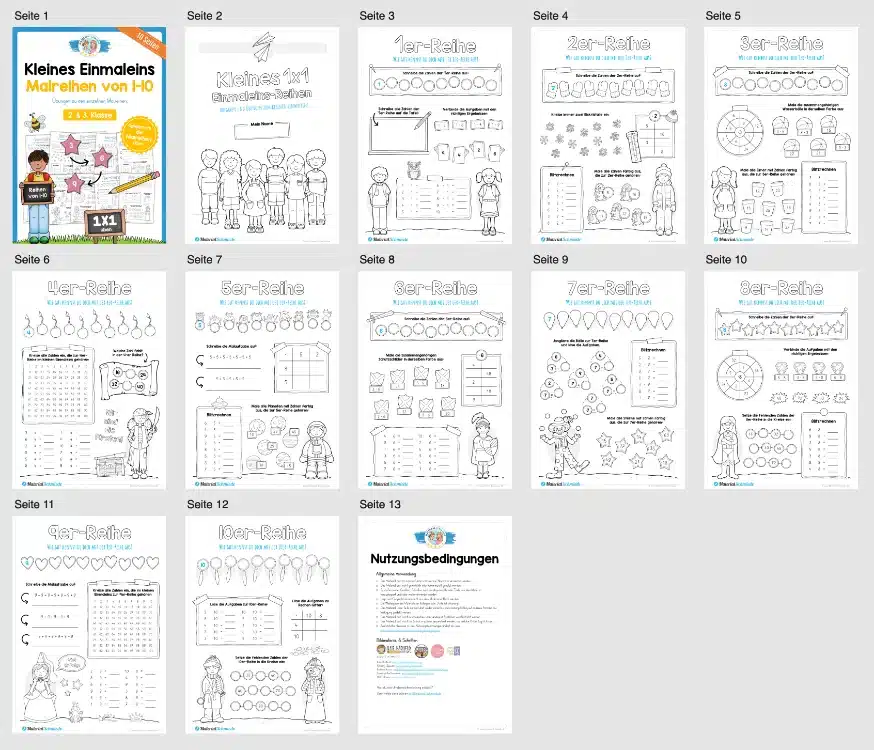 In diesem Materialpaket findet ihr zu jeder Reihe im kleinen Einmaleins ein Arbeitsblatt.