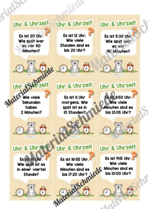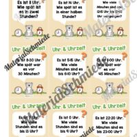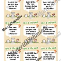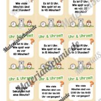 Mit Hilfe der Plauderkarten können die Kinder auf spielerische Art und Weise die Uhrzeit lernen, Zeitspannen berechnen sowie Grundwissen rund um die Uhr abfragen.