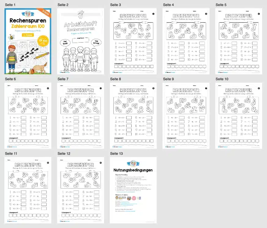 Mit diesem Arbeitsheft tauchen Kinder in spannende Rechenspuren im Zahlenraum bis 100 ein. Sie lösen Plus- und Minusaufgaben und ordnen den Ergebnissen Buchstaben zu – sodass nach und nach das Lösungswort entsteht.