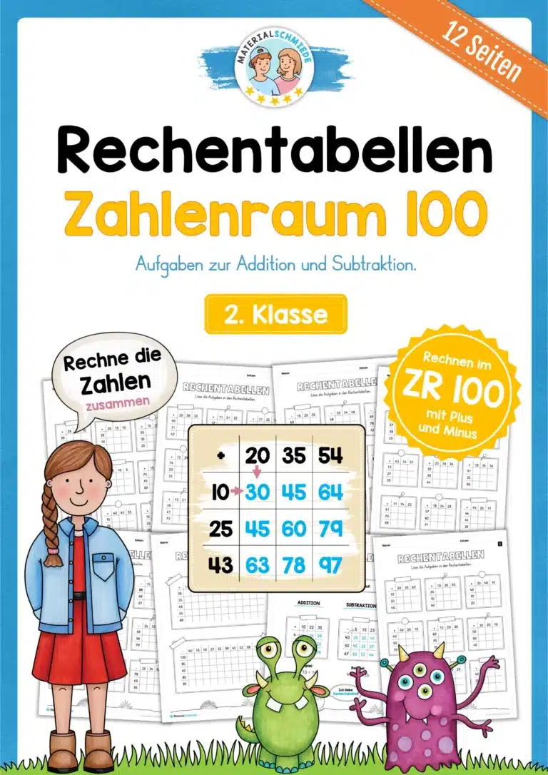 Mit Hilfe der Übungen zu den Rechentabellen sollen die Kinder sich im Zahlenraum 100 zurechtfinden und und auf einfache Art und Weise das Addieren und Subtrahieren üben.