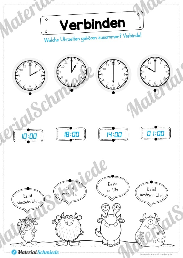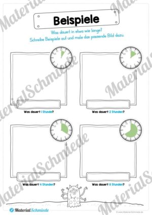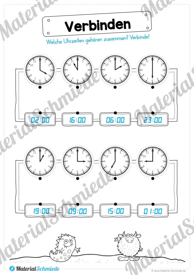 Um die Motivation der Schüler zu steigern, arbeiten wir auf den Arbeitsblättern zur Uhrzeit mit kleinen Monstern, welche die Aufgaben ein wenig auflockern sollen.