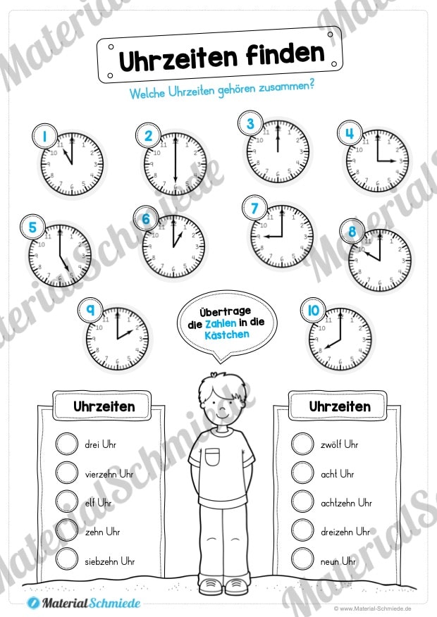 - Uhrzeiten verbinden (analoge und digitale Uhren)