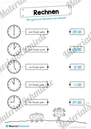 - Rechnen mit Uhrzeiten (ablesen, rechnen, verbinden)