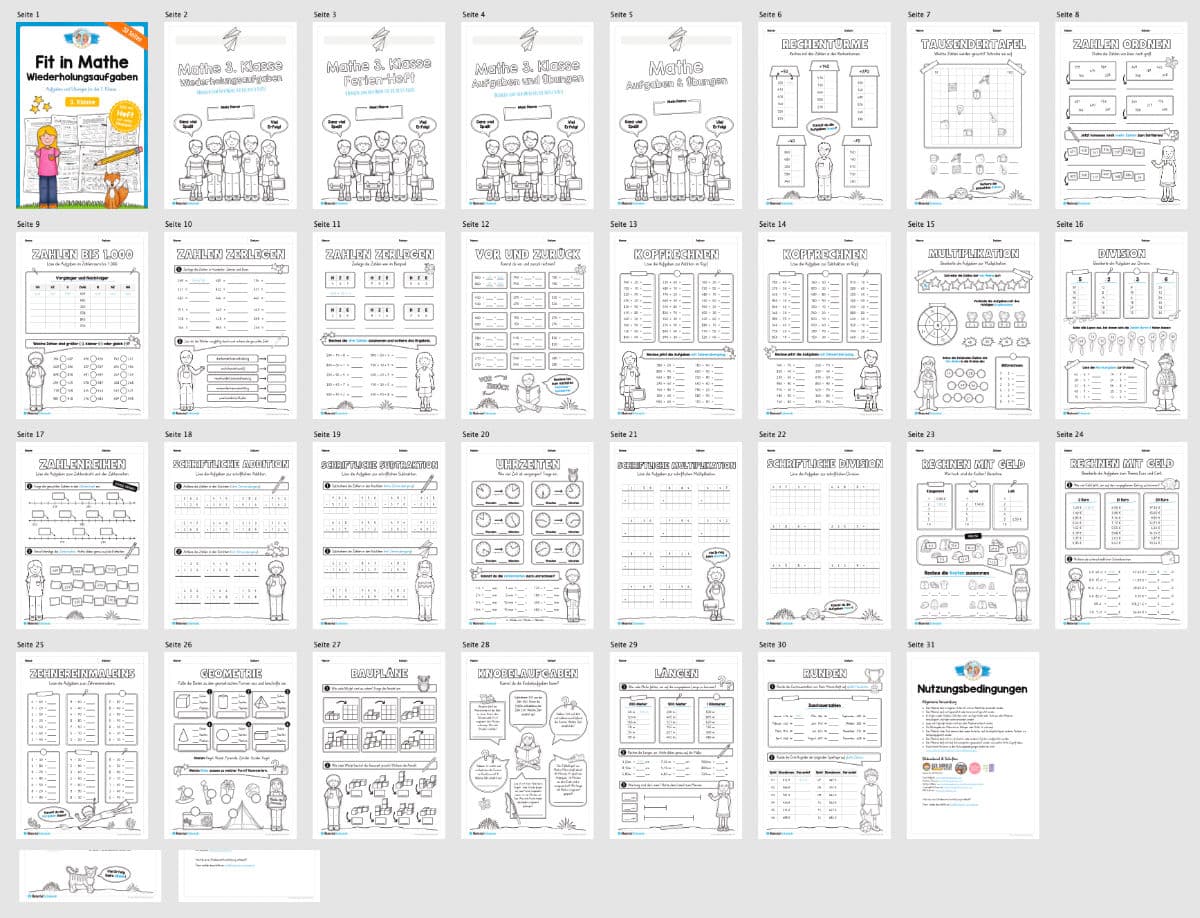 Unser Wiederholungsheft für den Matheunterricht „Fit in Mathe“ für die 3. Klasse enthält insgesamt 30 Arbeitsblätter.