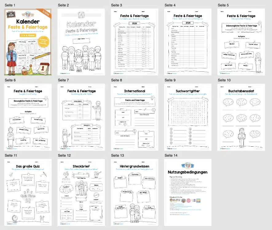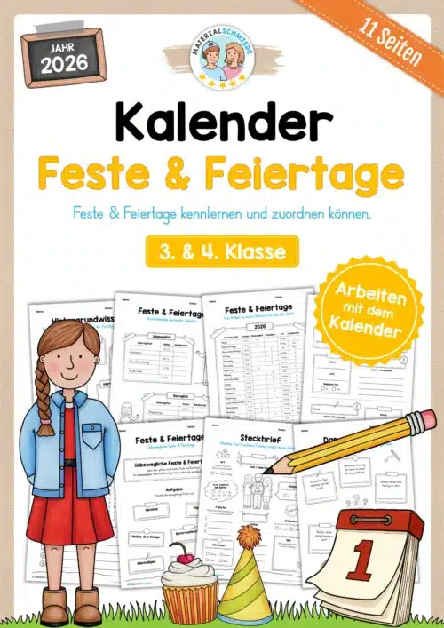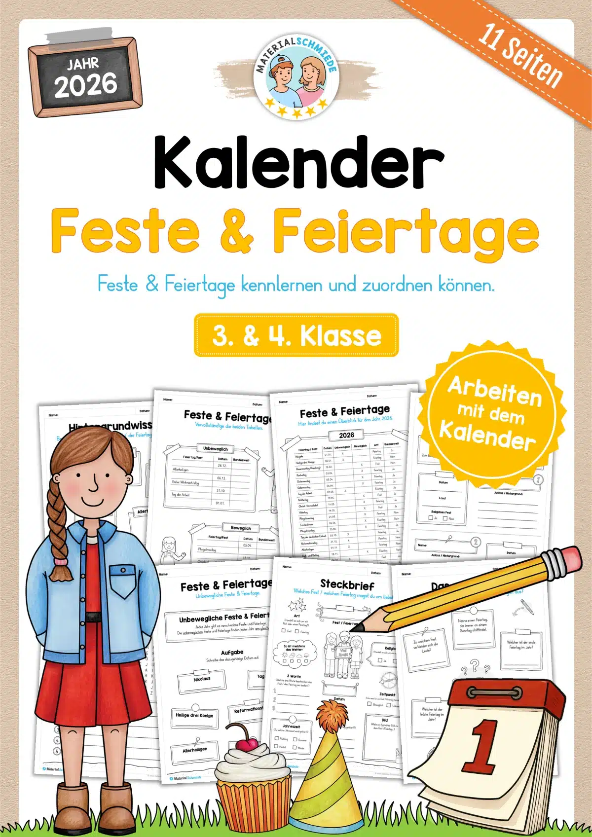 Dieses Materialpaket zum Thema Kalender enthält 11 Arbeitsblätter rund um das Thema Feste & Feiertage zum Jahr 2026.