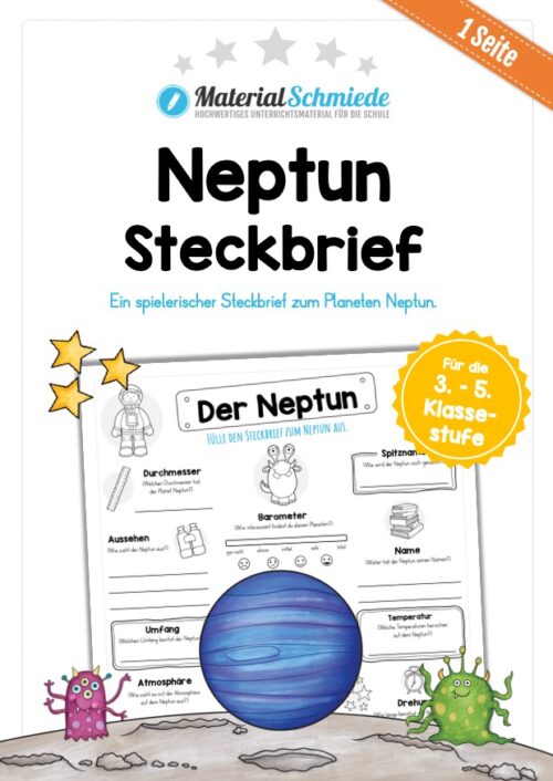Die Kinder sollen auf dem Steckbrief unter anderem folgende Informationen zum Neptun notieren: