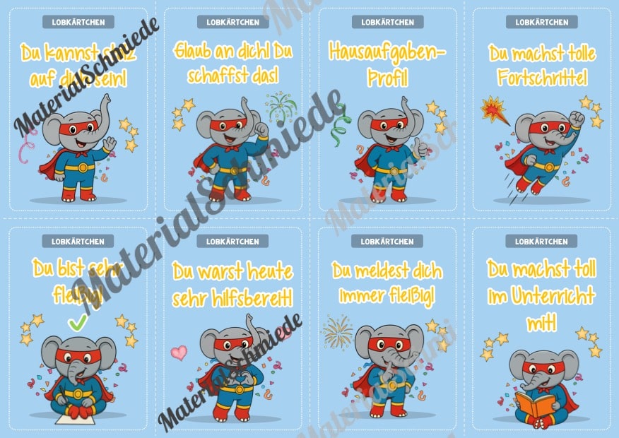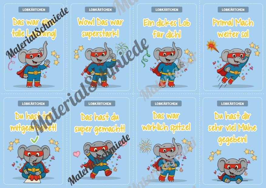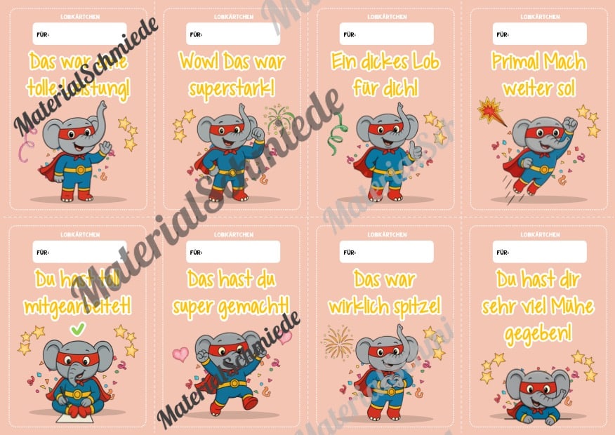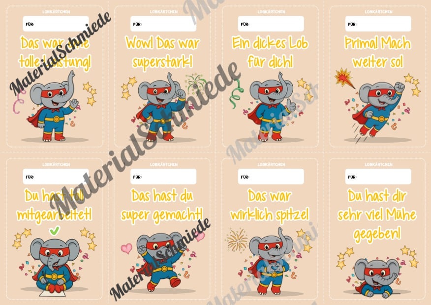 Hier findet ihr Lobkärtchen für die Elefantenklasse.