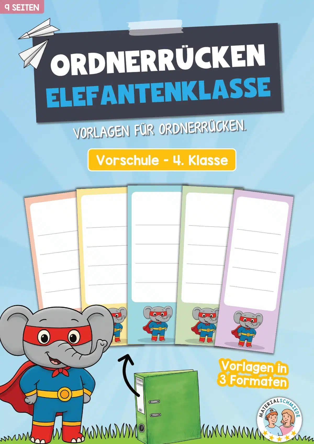 Ordnerrücken für die Elefantenklasse (3 Formate)