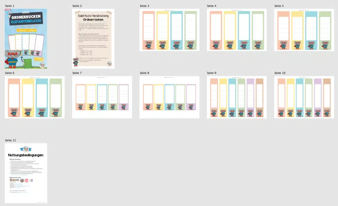 Außerdem findet ihr bei uns viele weitere Materialien rund um die Elefantenklasse sowie Sparpakete für Ordnerrücken zu anderen Klassentieren.