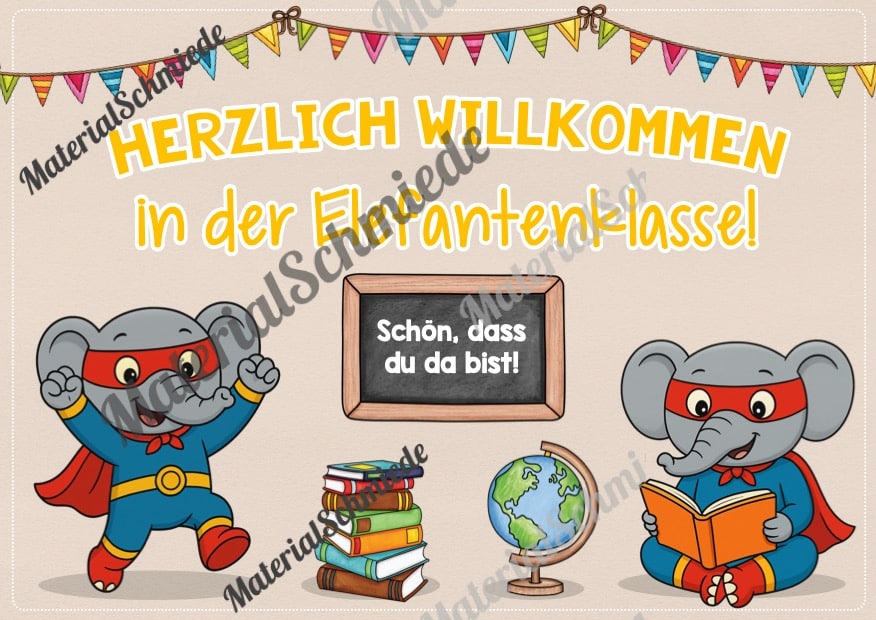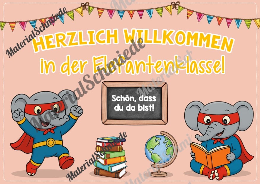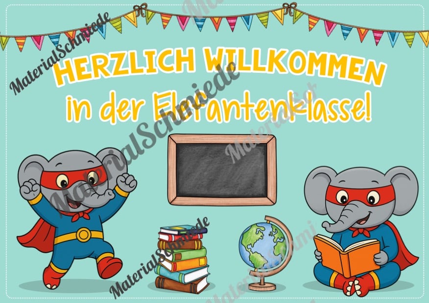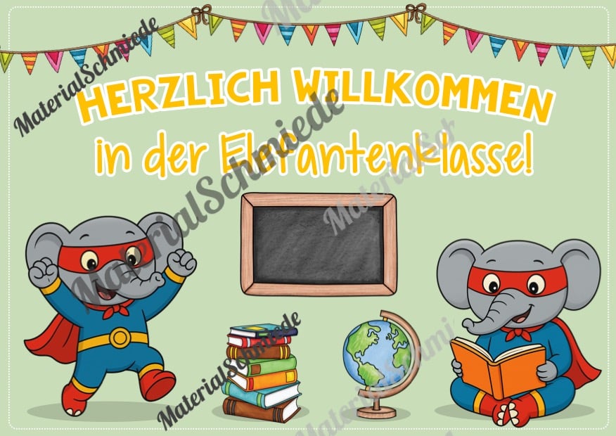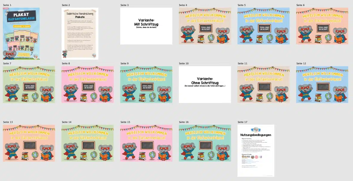 Hier findet ihr 6 Willkommensplakate für die Elefantenklasse.