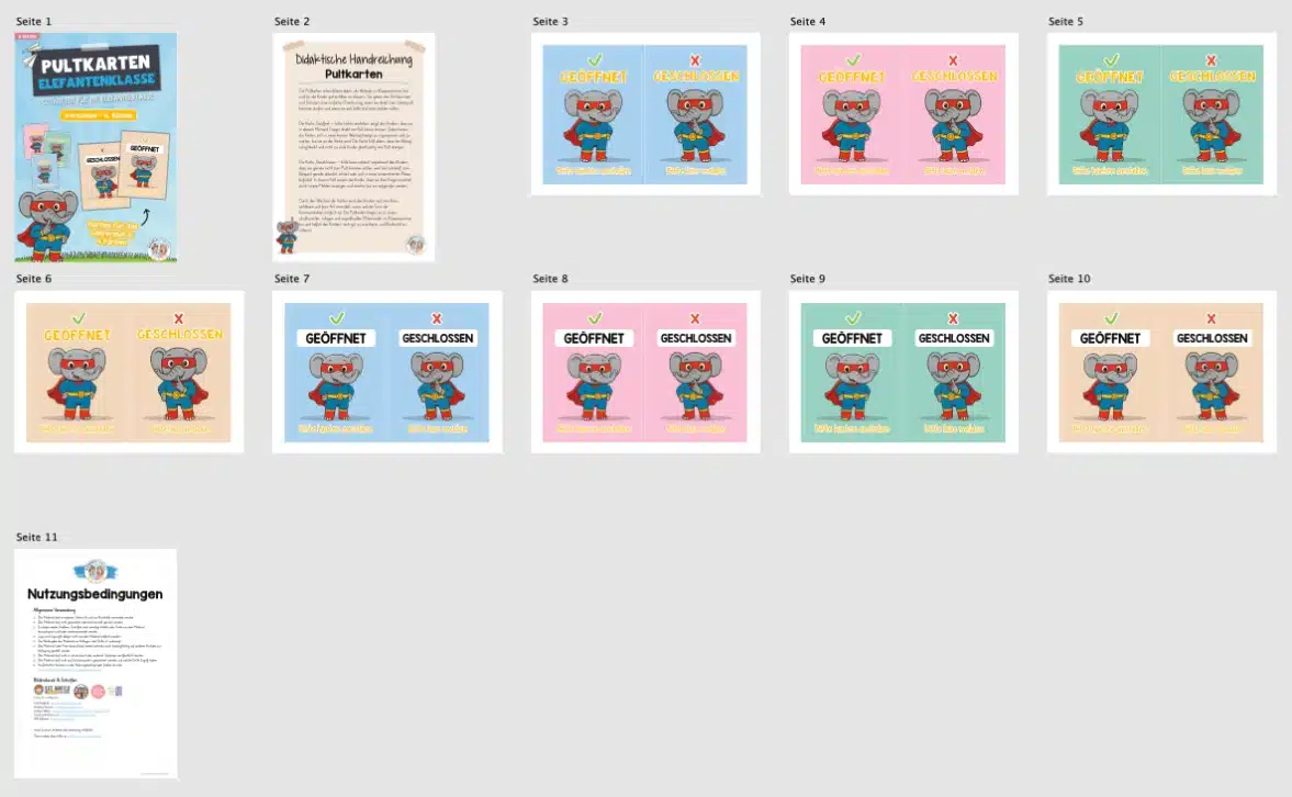 Hier findet ihr Pultkarten für die Elefantenklasse.