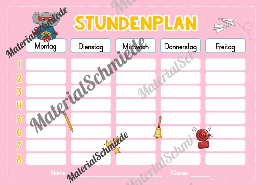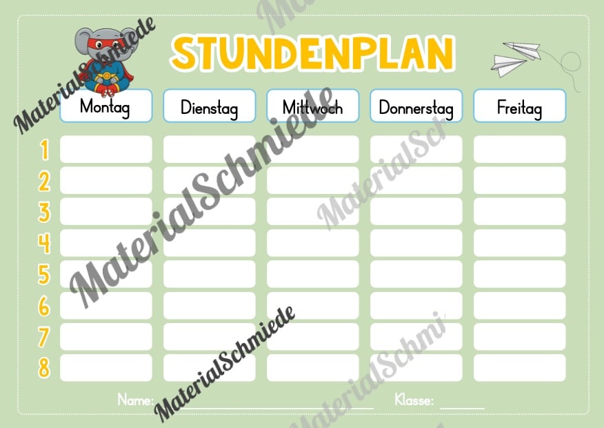 Hier findet ihr Stundenplan-Vorlagen für die Elefantenklasse.