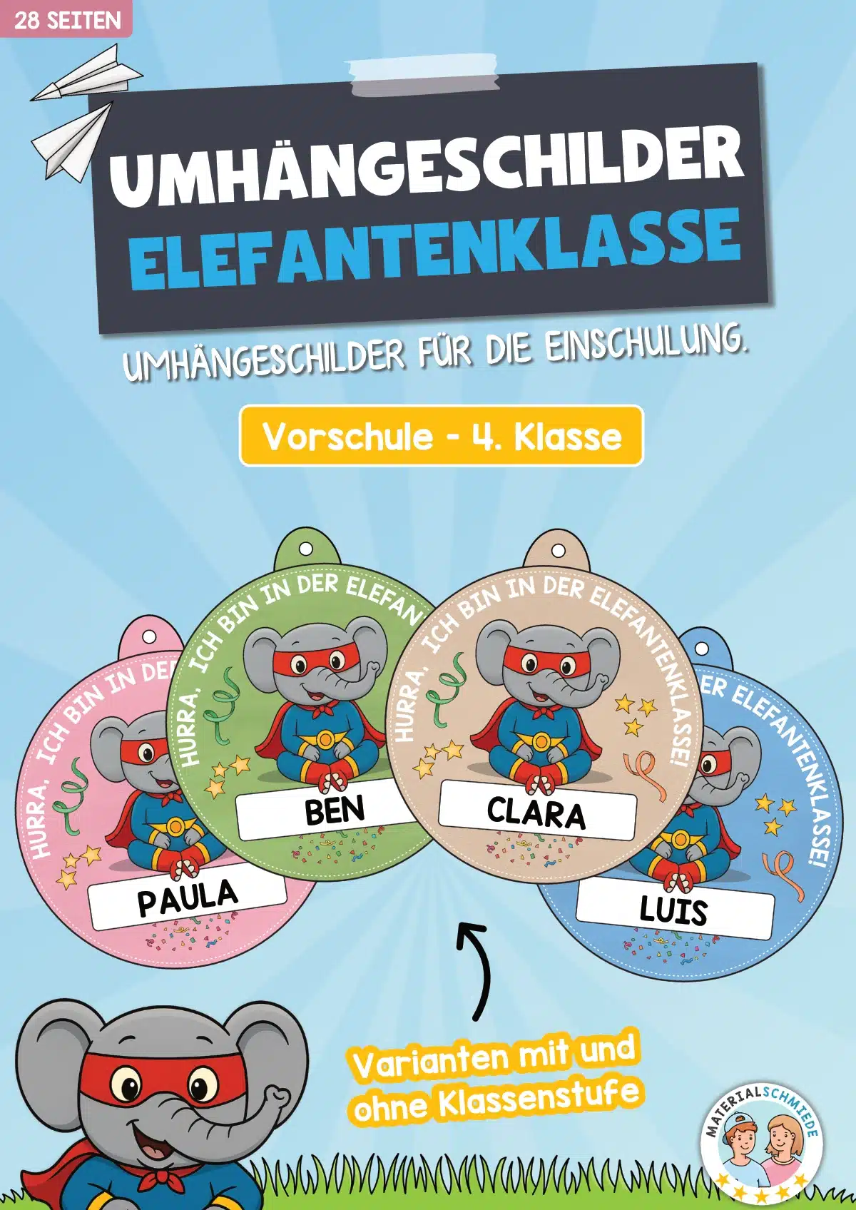 Umhängeschilder zur Einschulung (Elefantenklasse)